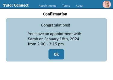 Throughout the process of creating Kim’s user journey map, I realized that Kim was feeling overwhelmed with the task of finding a qualified tutor for her sons. To assuage these feelings, I talked Kim through signing into to the website, and the process of searching and booking a tutor. I recognized that the cohesive UI made the user journey seamless and Kim was able to book Sarah as an English tutor for her sons with minimal instruction. Once the appointments were made, Kim felt relief that the task was complete.