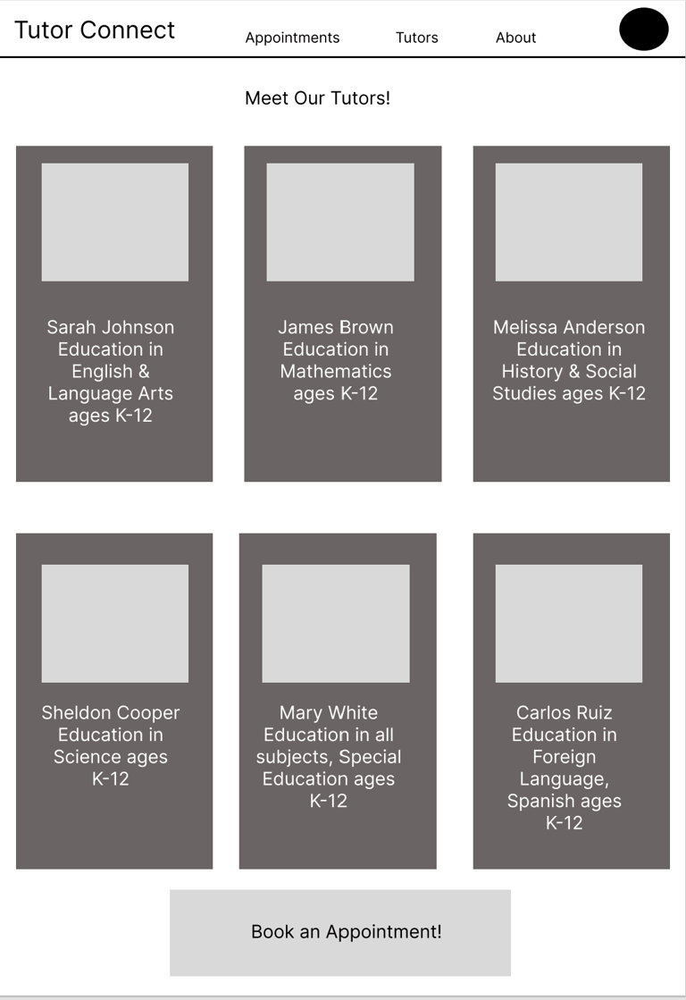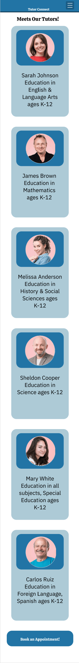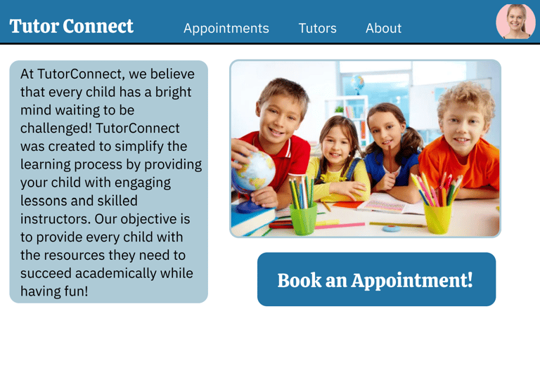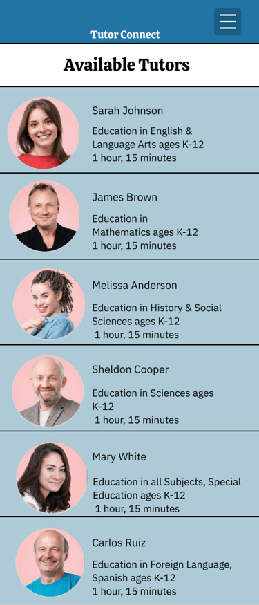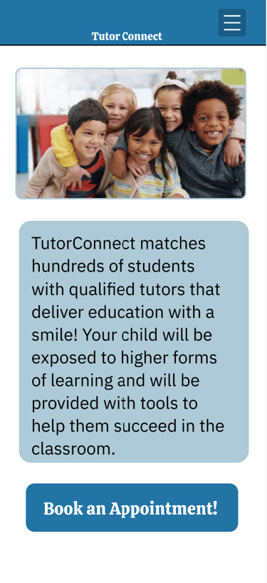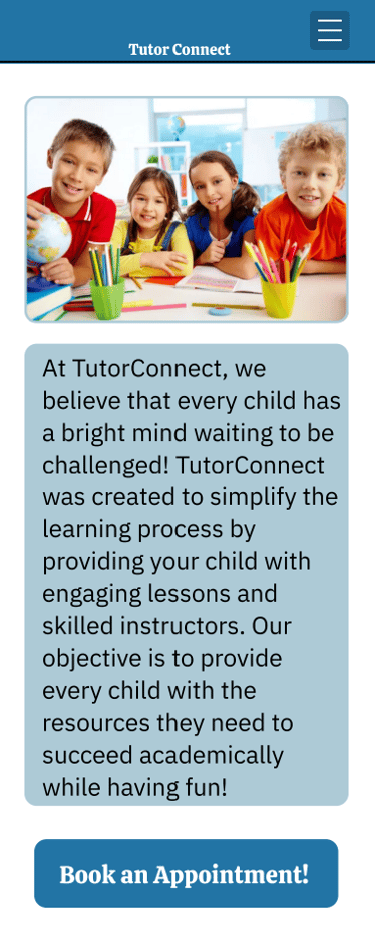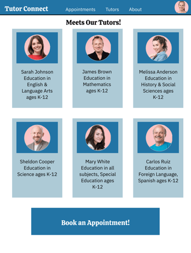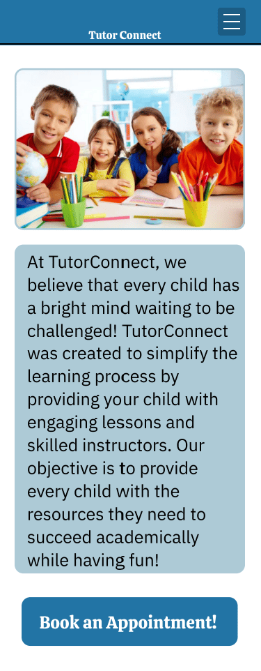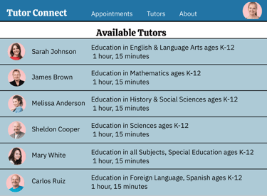 Design a responsive website that enables tutors to list their services and parents to search for and book time with tutors. The target audience of TutorConnect is parents with children in need of tutoring grades K-12.