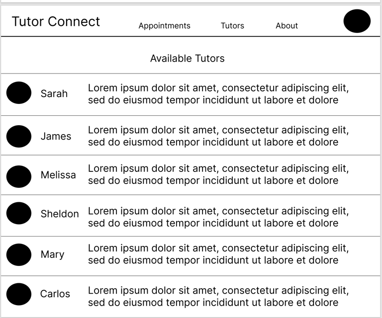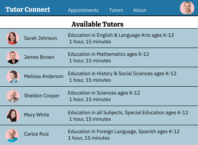 Participants were able to browse the available tutors outside of the appointment booking process.
