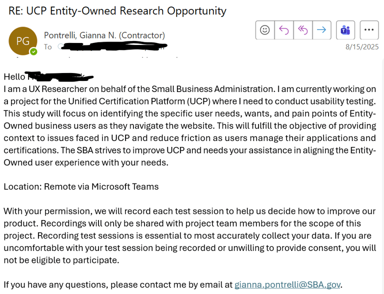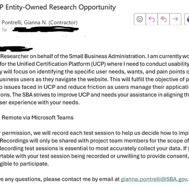 Further the SBA’s understanding of Entity-Owned business needs as they navigate UCP and tailor the site to better align those needs with the user experience.